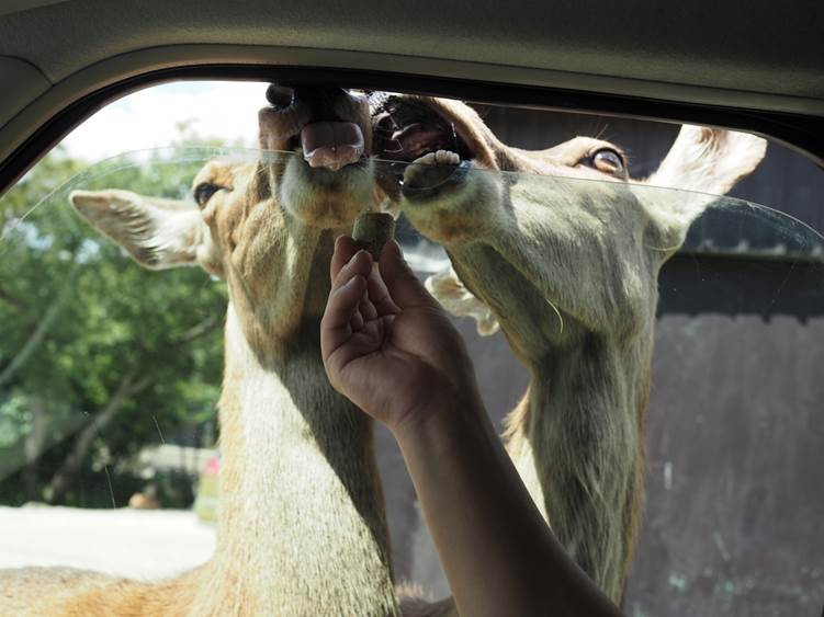 動物たちに近寄られたり、車を囲まれたりするドキドキ体験ができるのは車でのサファリ体験ならでは。かわいらしい動物の姿を間近で見ることができるため、人気の観光スポットです。